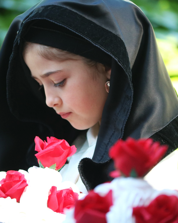 Todas las personas ataviadas con el traje típico, junto a la Rondalla de Peña Fragatina y la Rondalla Amigos del Folklore del Bajo Cinca, desfilarán desde los Jardines Juan Carlos I pasando por el recorrido de las estampas, hasta llegar a la Iglesia de San Pedro, agradeciendo que sólo participen en el mismo las personas ataviadas con el traje típico.